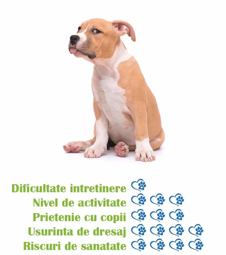 - Sunt caini energici – Amstaffii au nevoie de multa activitate fizica si exercitiu, ceea ce inseamna ca vor fi o alegere buna pentru oamenii care iubesc sa se plimbe sau sa se joace in aer liber.