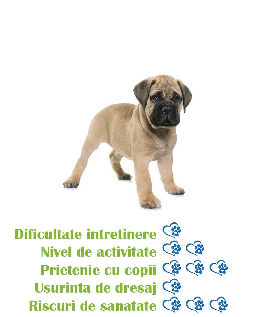 - Ingrijire usoara: Bullmastiff are o blana scurta si ingrijirea lui este relativ usoara, fiind suficienta periajul regulat si o spalare ocazionala.