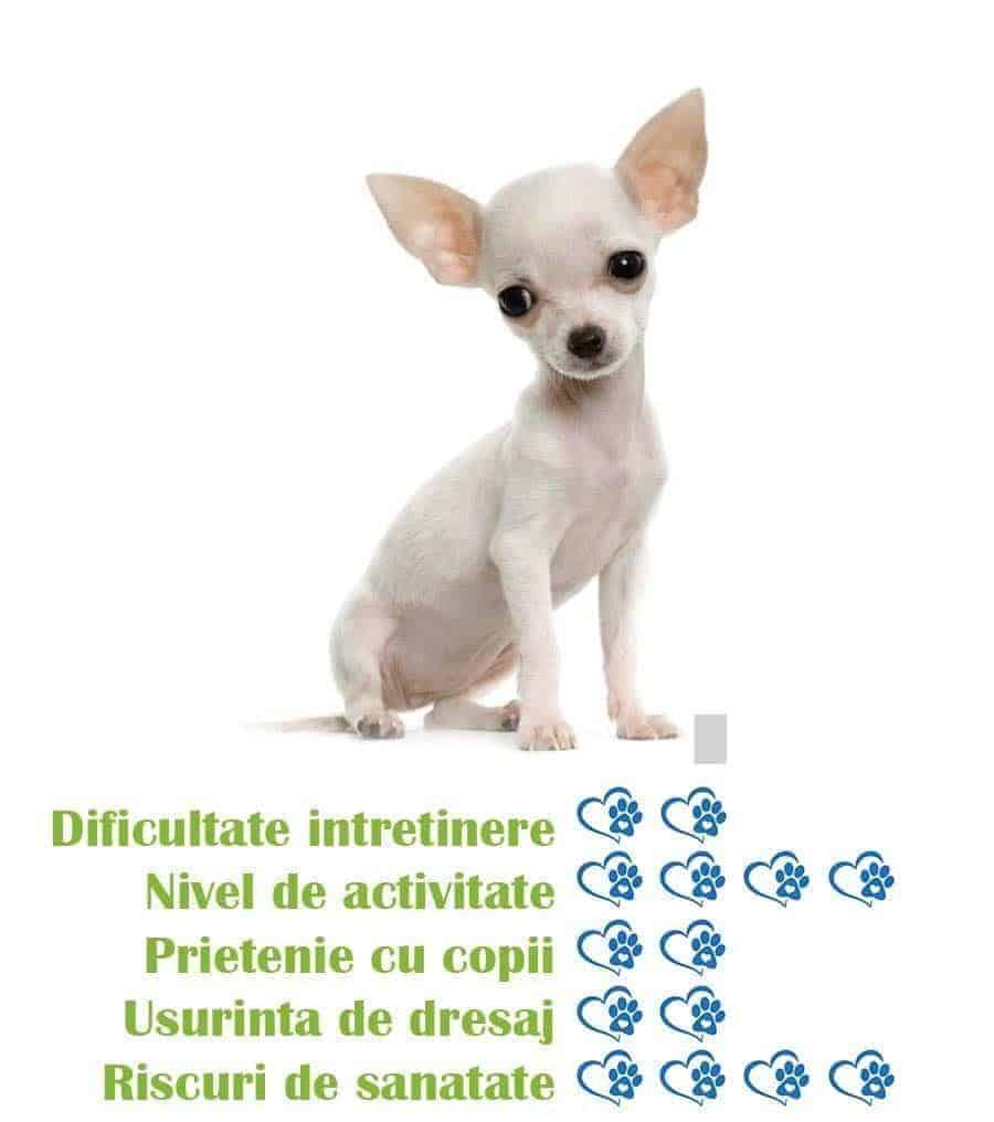 - Aptitudini de antrenament: Chihuahua este o rasa inteligenta si usor de antrenat, fiind potrivita pentru cei care doresc un companion bine educat.