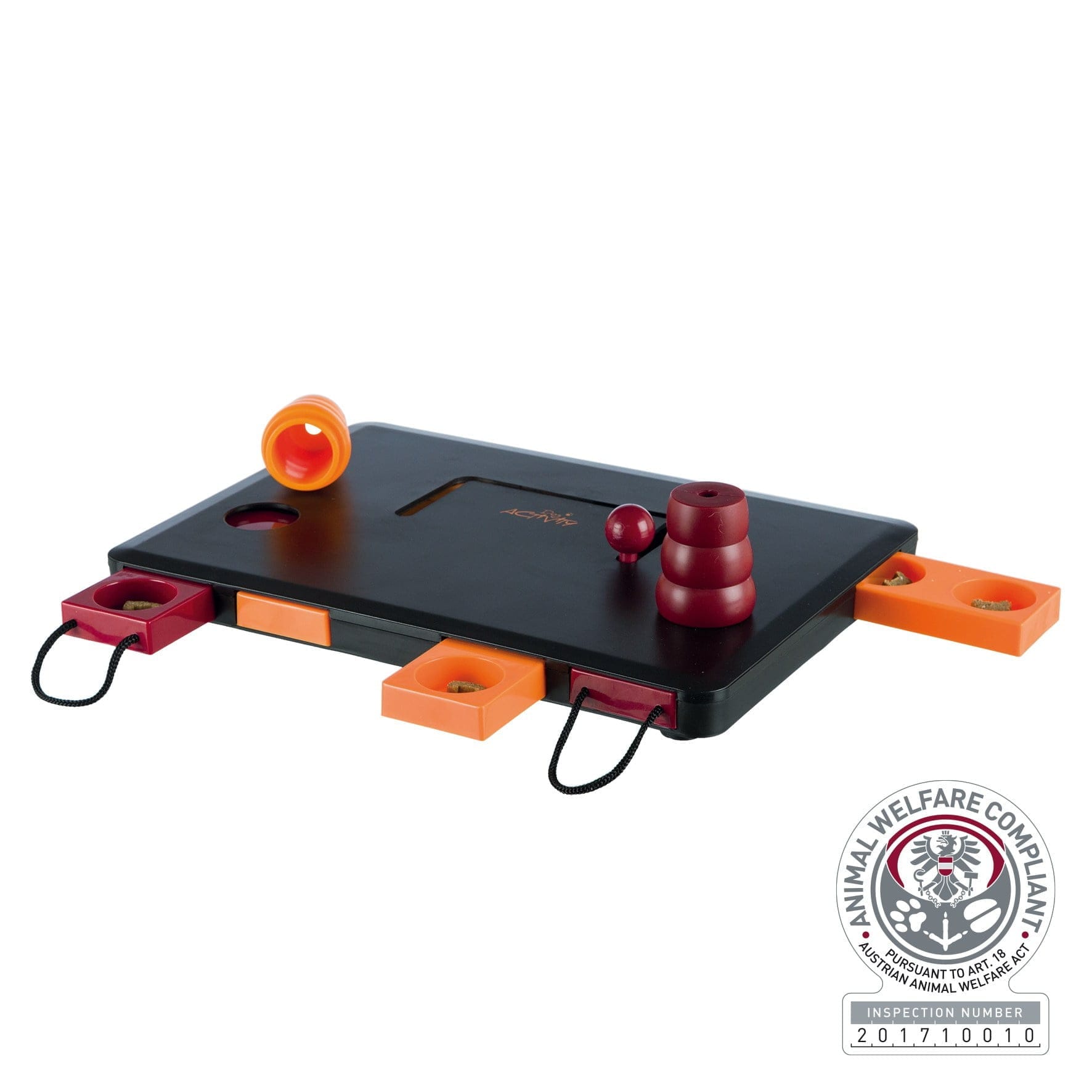 Jucaria Trixie Dog Activity Move2Win stimuleaza abilitatile cainelui ce va folosi tactici diferite pentru deschiderea sertarelor cu hrana ascunsa. Cele 2 conuri maresc gradul de dificultate a jocului prin blocarea a 2 compartimente.
