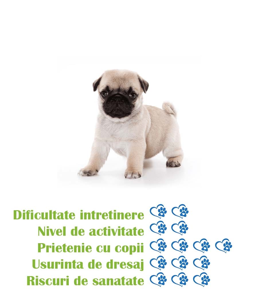 - Ideal pentru familii: Mopsul este o rasa iubitoare si prietenoasa, fiind potrivit pentru familii cu copii sau pentru cei care cauta un companion de incredere.