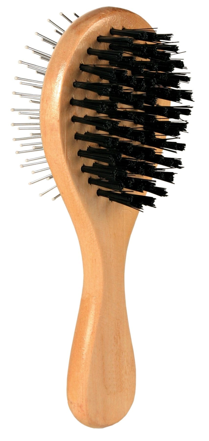 Perie dubla din lemn cu peri metalici si peri din nylon
