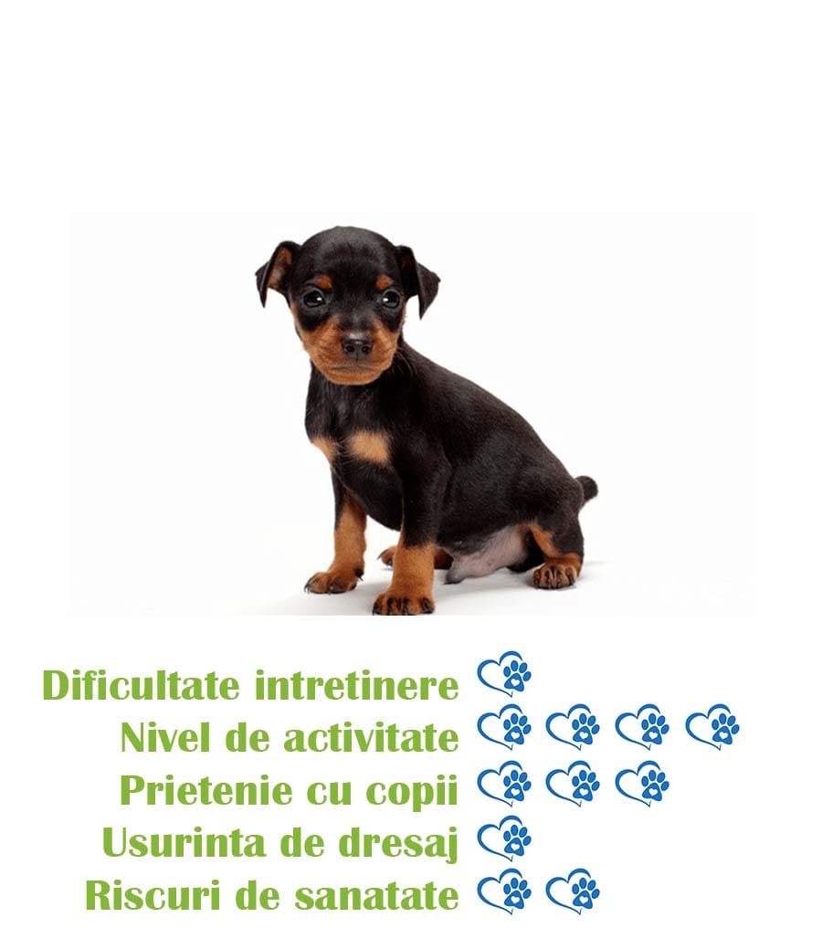 - Personalitate: Pinscher Pitic este o rasa curajoasa, independenta si inteligenta, care poate fi un companion de incredere.