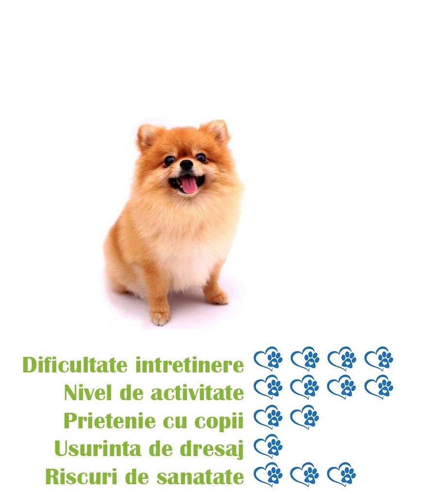 - Ingrijire usoara: blana Pomeranianului nu necesita ingrijire speciala, fiind suficienta periajul regulat si spalarea ocazionala.