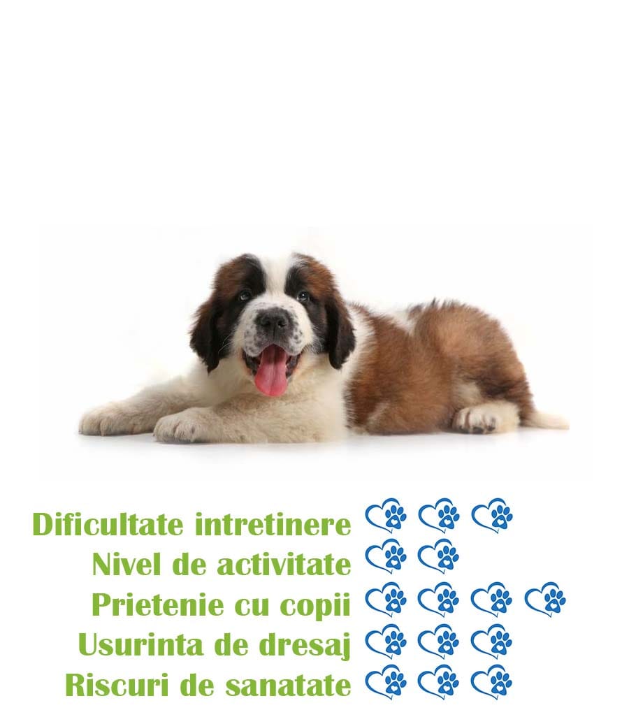 - Personalitate iubitoare: Saint Bernard este o rasa iubitoare si protectoare, care se ataseaza foarte mult de familia sa.