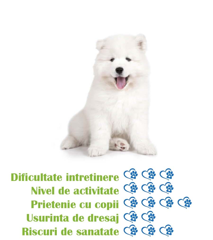 - De la BucuriaCasei puteti cumpara un pui Samoyed sanatos, vaccinat si verificat de medicul veterinar pentru a va asigura ca primiti un animal de companie de calitate.